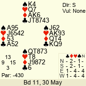 | 3 NT | S | +1 | 630 | 4 | 01 - 01 | 1 | 1 |