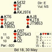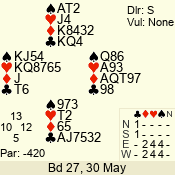 | Con | Dc | Res | Score | Ld | Pairs | Rd | Tbl | 4  | S | = | 420 | 4 | 05 - 01 | 5 | 5 |