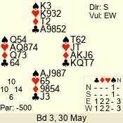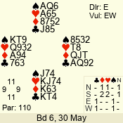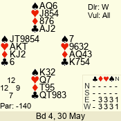 | 3 NT | W | +3 | -690 | 5 | 03 - 07 | 6 | 3 |
