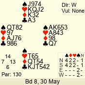 | Con | Dc | Res | Score | Ld | Pairs | Rd | Tbl | 2  | S | +2 | 130 | A | 03 - 06 | 7 | 3 |