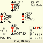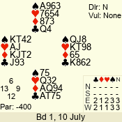 | 3 NT | W | +1 | -430 | K | 01 - 01 | 1 | 1 |
