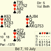 | 3 NT | S | -2 | -200 | K | 07 - 06 | 2 | 7 |