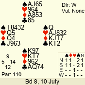 | 3 NT | W | +2 | -660 | 2 | 03 - 08 | 8 | 3 |