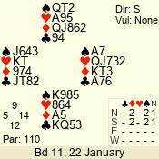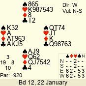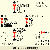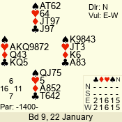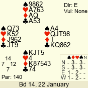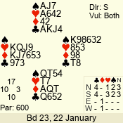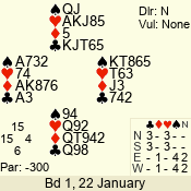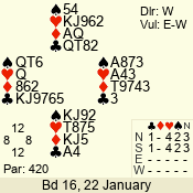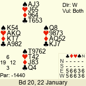 | 3 NT | W | +2 | -660 | 5 | 03 - 01 | 3 | 3 |