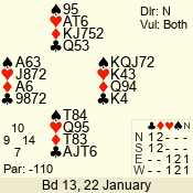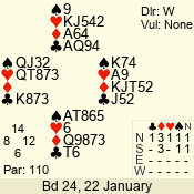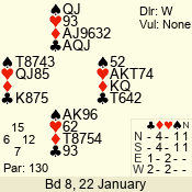 | 3 NT | W | +2 | -660 | 3 | 02 - 05 | 4 | 2 |