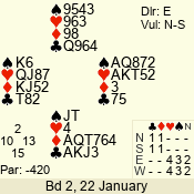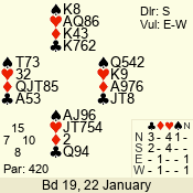 | Con | Dc | Res | Score | Ld | Pairs | Rd | Tbl | 4  | S | = | 420 | T | 02 - 05 | 4 | 2 |