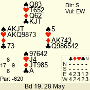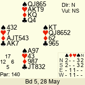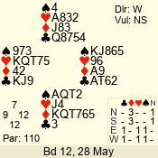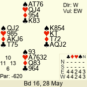 | 3 NT | W | +1 | -630 | 5 | 02 - 05 | 4 | 2 |