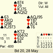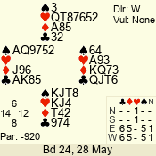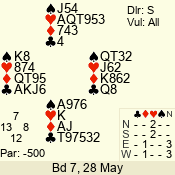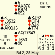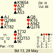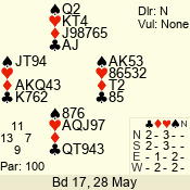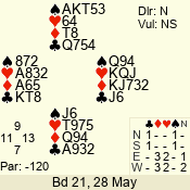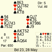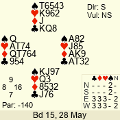 | 3 NT | S | +1 | 430 | A | 02 - 03 | 6 | 2 |