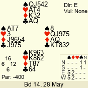 | 3 NT | E | +1 | -430 | 3 | 04 - 02 | 3 | 4 |