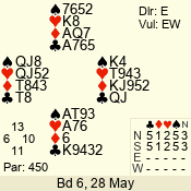 | Con | Dc | Res | Score | Ld | Pairs | Rd | Tbl | 4  | S | +1 | 450 | 3 | 04 - 06 | 5 | 4 |