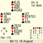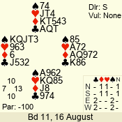 | 3 NT | N | +2 | 660 | Q | 05 - 08 | 7 | 5 |