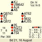 | 3 NT | E | +1 | -630 | 2 | 02 - 04 | 8 | 2 |