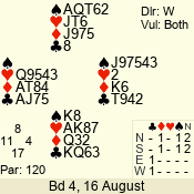 | 3 NT | W | +1 | -430 | 4 | 02 - 04 | 8 | 2 |