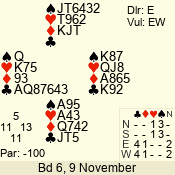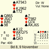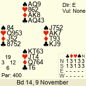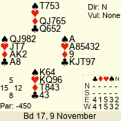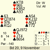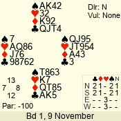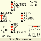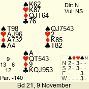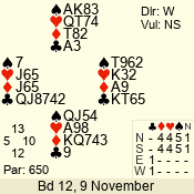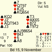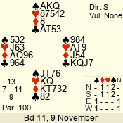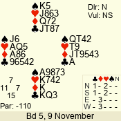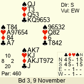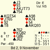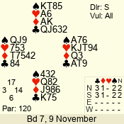 | 3 NT | S | +1 | 430 | Q | 05 - 06 | 7 | 5 |