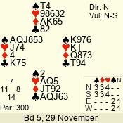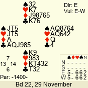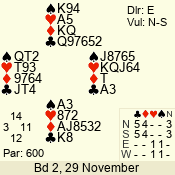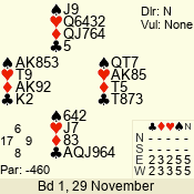 | 3 NT | E | +2 | -460 | 6 | 03 - 05 | 8 | 3 |