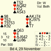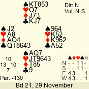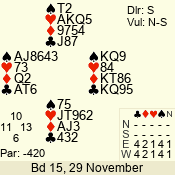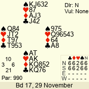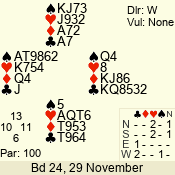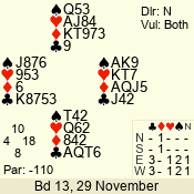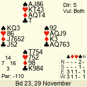 | 3 NT | W | +1 | -430 | 4 | 09 - 03 | 7 | 9 |