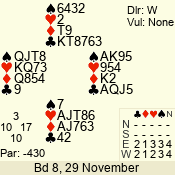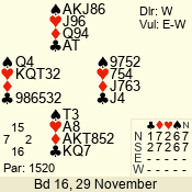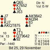 | 3 NT | W | +1 | -630 | 8 | 07 - 03 | 5 | 7 |