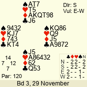 | 3 NT | W | +1 | -430 | 2 | 05 - 07 | 8 | 5 |