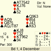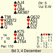 | 3 NT | W | +1 | -430 | 3 | 07 - 09 | 10 | 7 |