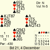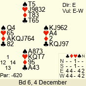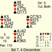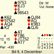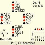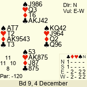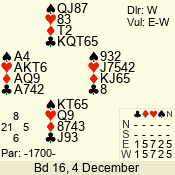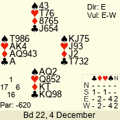 | 3 NT | W | +1 | -430 | 9 | 07 - 03 | 5 | 7 |