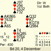 | 3 NT | W | +1 | -630 | 7 | 09 - 05 | 5 | 9 |