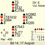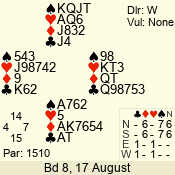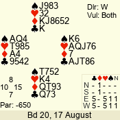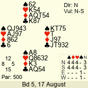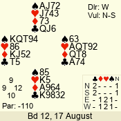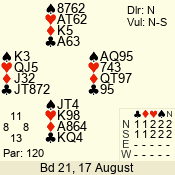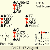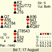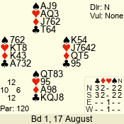 | 3 NT | S | +1 | 430 | 2 | 07 - 05 | 3 | 7 |