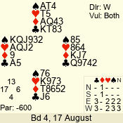 | 3 NT | W | +1 | -630 | K | 04 - 06 | 6 | 4 |