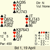 | Con | Dc | Res | Score | Ld | Pairs | Rd | Tbl | 4  | S | +1 | 450 | K | 02 - 03 | 7 | 2 |