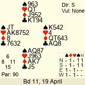 | 3 NT | S | +1 | 630 | 7 | 07 - 01 | 7 | 7 |