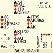 | 3 NT | W | +2 | -660 | 3 | 04 - 03 | 2 | 4 |