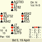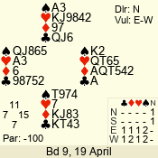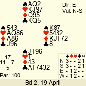 | 2 NT | W | +2 | -180 | Q | 07 - 04 | 4 | 7 |