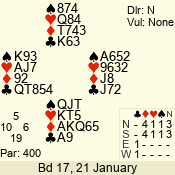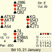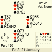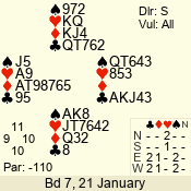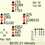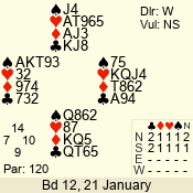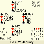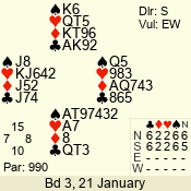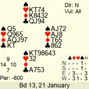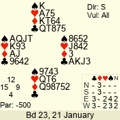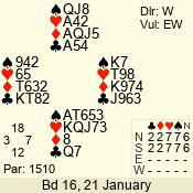 | 3 NT | W | +1 | -430 | 3 | 10 - 01 | 7 | 4 |