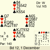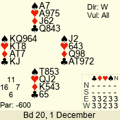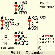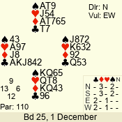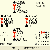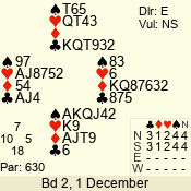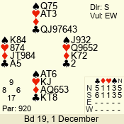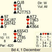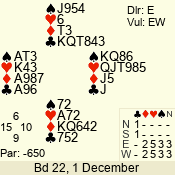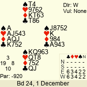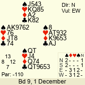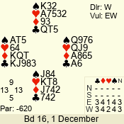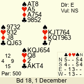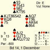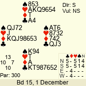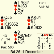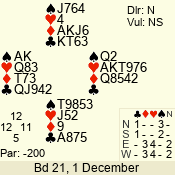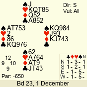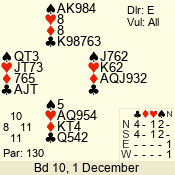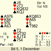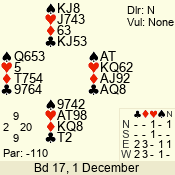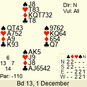 | 3 NT | E | +1 | -430 | 3 | 19 - 05 | 13 | 2 |