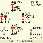 | 3 NT | E | +1 | -630 | 3 | 02 - 10 | 7 | 10 |