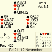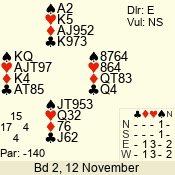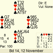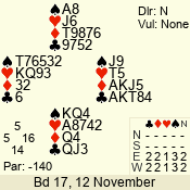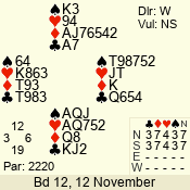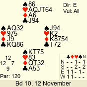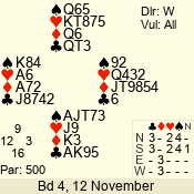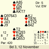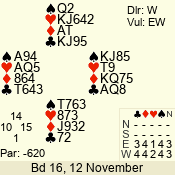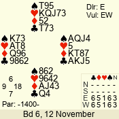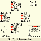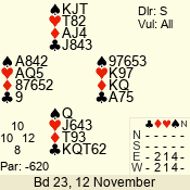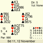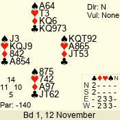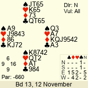 | 3 NT | W | +2 | -660 | 3 | 11 - 01 | 6 | 3 |