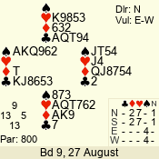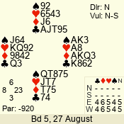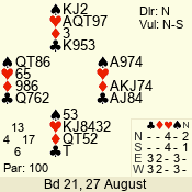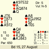 | 3 NT | S | +1 | 430 | 3 | 04 - 08 | 5 | 4 |