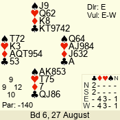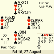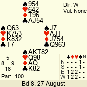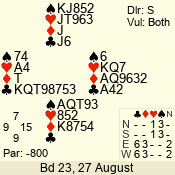 | 3 NT | W | +1 | -430 | T | 04 - 02 | 3 | 4 |