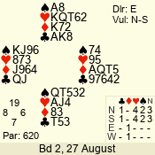 | 3 NT | E | +1 | -630 | A | 05 - 04 | 2 | 5 |