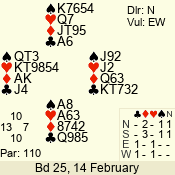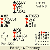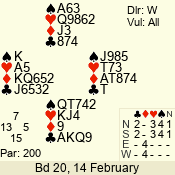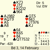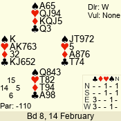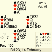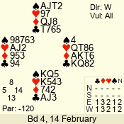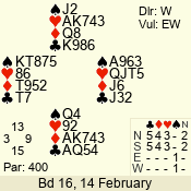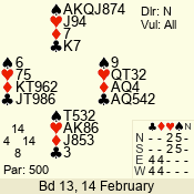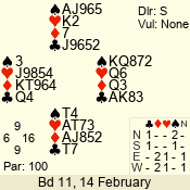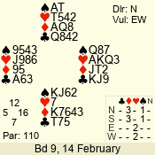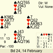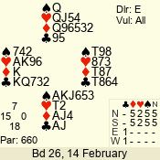 | 3 NT | W | +2 | -660 | 9 | 01 - 01 | 1 | 1 |