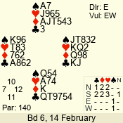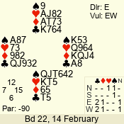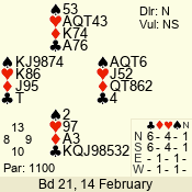 | 3 NT | E | +1 | -430 | 2 | 01 - 01 | 1 | 1 |