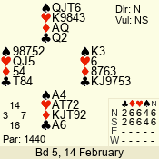 | 3 NT | E | +1 | -430 | 2 | 04 - 07 | 7 | 4 |