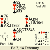 | 3 NT | S | +2 | 460 | 4 | 07 - 05 | 3 | 7 |