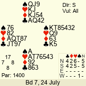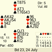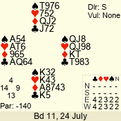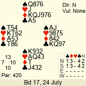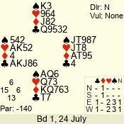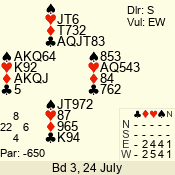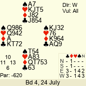 | 3 NT | S | +1 | 630 | 9 | 04 - 04 | 1 | 4 |