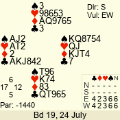 | 3 NT | S | +1 | 630 | 4 | 08 - 05 | 4 | 8 |