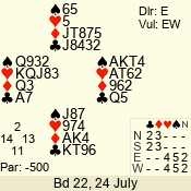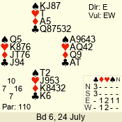 | 3 NT | E | +1 | -430 | 6 | 01 - 05 | 5 | 1 |