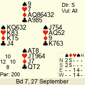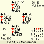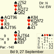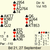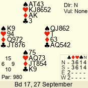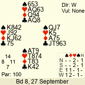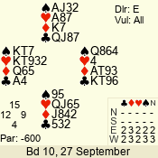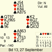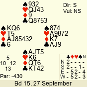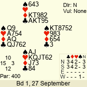 | 3 NT | S | +1 | 430 | 9 | 05 - 03 | 3 | 5 |