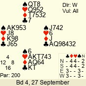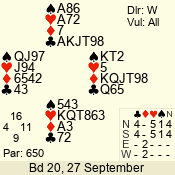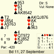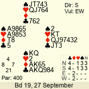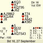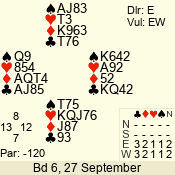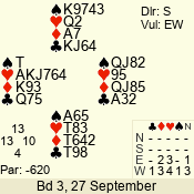 | 3 NT | S | +1 | 630 | 3 | 06 - 01 | 6 | 6 |