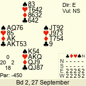 | 3 NT | E | +1 | -430 | 7 | 01 - 07 | 2 | 1 |