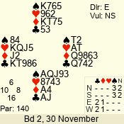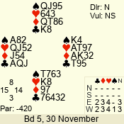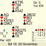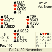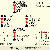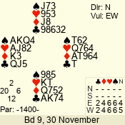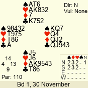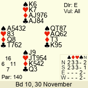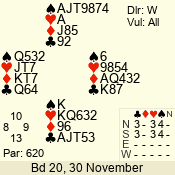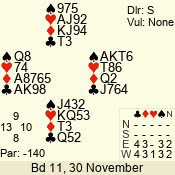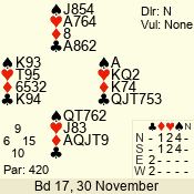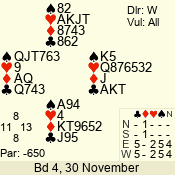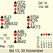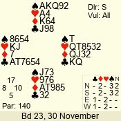 | 3 NT | W | +1 | -630 | 4 | 04 - 02 | 3 | 4 |