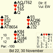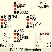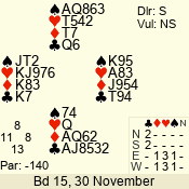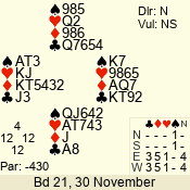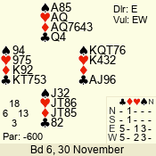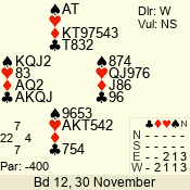 | 3 NT | W | +1 | -430 | 6 | 04 - 06 | 7 | 4 |